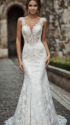 Talk about a showstopper! This dress is like a secret mission to make you feel both incredibly fancy and super relaxed, all at once. It’s got that gorgeous mermaid shape that makes you look like you just emerged from a sparkling, ethereal ocean, ready to make waves (pun intended!). The delicate lace and those little hints of shimmer mean you’ll catch the light perfectly, probably making everyone whisper, ‘Who IS that magical person?’