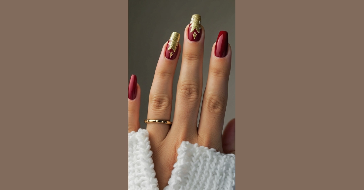 These nails are seriously festive! Look at those gorgeous red and gold designs – they’re like a tiny Christmas party on your fingertips. It’s the perfect blend of holiday cheer and chic style, way better than accidentally wearing mismatched socks on Christmas morning. And that snowflake ring? Total winter wonderland vibes! I bet even Santa would approve of this nail art – maybe he’d even ask for a manicure himself!