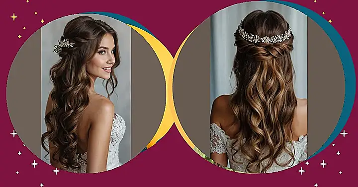 This isn’t just a pretty hairstyle; it’s practically magic! All those perfectly placed curls mean you won’t have to worry about looking like you just wrestled a giant pile of autumn leaves – your hair will stay stunning from the ceremony to the dance floor. The half-updo keeps things elegantly in place while letting those beautiful waves flow freely, perfect for capturing those golden hour photos. Plus, with a hairstyle this gorgeous, you might just make the actual autumn trees a little bit jealous of your natural beauty (and your excellent taste!).