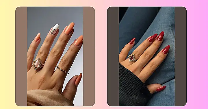 Okay, picture this: you’re walking down the street, and you see someone rocking these amazing, shiny nails. They’re like, the perfect blend of spooky and glam, just like your favorite Halloween costume! It’s a deep, rich burgundy, like the color of a vampire’s cape (but way less scary, and way more stylish). The nails are long and sleek, but not too long, and they’re perfectly polished to a high-shine finish. You can’t help but admire them, especially when you notice the gorgeous diamond ring peeking out from under those nails. It’s like a little piece of magic on their finger!