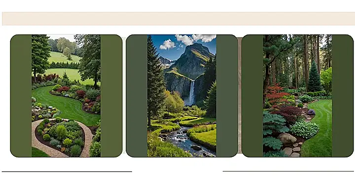 Those towering trees on the edge look like the ultimate chaperones watching over this incredibly snazzy garden party happening right at their feet. It’s like the cool, messy older sibling, the forest, is politely crashing their younger sibling’s meticulously planned bash, the garden. You can almost hear the big trees whispering, “Seriously, who ironed the grass?” while the perfectly round bushes just roll their eyes and try to look extra important and totally not jealous of the forest’s free-spirited messiness.