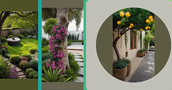 And can we talk about that dreamy tree throwing shade (literally, not metaphorically!) with its fuzzy yellow ‘flowers’ looking like the softest bokeh filter? This isn’t just an outdoor space; it’s a whole mood. The dark path invites you to stroll, probably imagining you’re on a secret quest, while the bright walls make everything feel open and airy. It shows that with some clever outdoor gardens design, you can turn any boring wall into a vibrant, chill-out zone perfect for reading a book, sipping a juice, or just escaping the chaos of homework for a bit. It’s a plant party, and everyone’s invited!