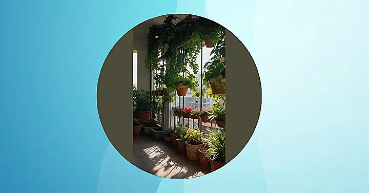 This picture shows a balcony garden, which is basically like a mini-garden on your balcony! It’s super cool because you can grow your own herbs, flowers, or even veggies in pots. Imagine waking up every morning to the smell of fresh basil or the sight of colorful flowers. It’s like having a little bit of nature right outside your door.