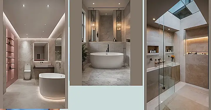 Just check out that amazing freestanding tub – it’s practically begging for a bubble bath marathon, complete with your favorite tunes and zero interruptions. And those sparkling pendant lights? They’re not just providing light; they’re throwing a tiny, glamorous party right above your head! With the stylish black fixtures, the gorgeous marble finishes, and even a pop of green from that plant, this space proves that a bathroom can be way more than just functional. It’s a total upgrade that makes every single visit feel like a special treat, turning everyday routines into pure luxury.