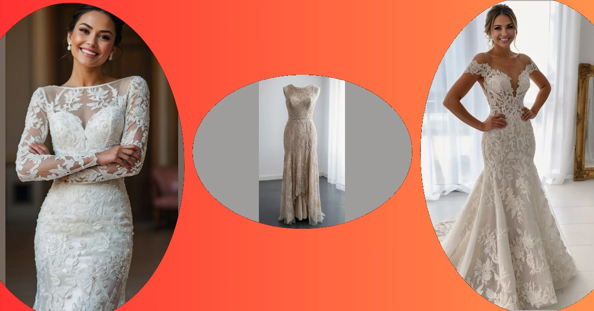 This dress is seriously princess material! The top has these delicate lace designs that make it look like you’re wearing a crown of flowers, but instead, it’s stitched right onto the dress. Then, BAM! A beaded belt cinches your waist, adding just the right amount of sparkle, kind of like adding the perfect filter to your wedding pics before posting them!