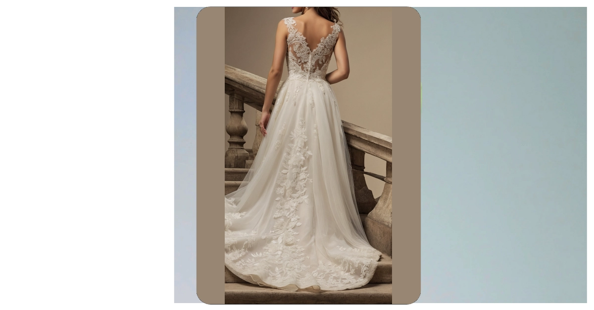The intricate lace detailing is absolutely breathtaking! It’s like a field of wildflowers embroidered onto the dress, making it super romantic and elegant. The back is especially beautiful, showcasing the lace in a way that’s both classic and modern, all at once. You can practically hear the wedding bells ringing already! It’s the kind of dress you’d wear if you were marrying your prince charming on a grand staircase, just like in the picture!