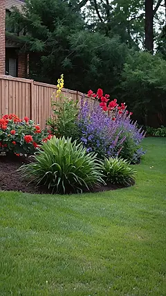 The way the flower beds are arranged is also really cool. They curve along the edge of the lawn like a giant, colorful smile. You can just picture the homeowner feeling happy every time they step outside. This flowerbed is definitely a conversation starter! You might even catch some bees buzzing around, enjoying the sweet nectar of all those pretty flowers. It’s enough to make anyone want to grab a watering can and get their green thumbs going!