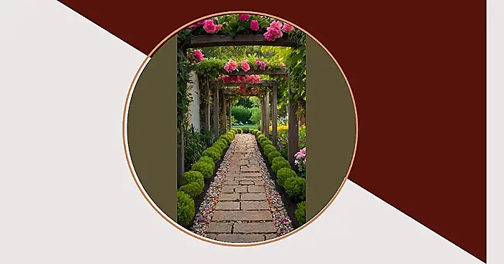 Picture this: you’re chilling under a super cool wooden archway, completely covered in lush green vines and bursting with pretty pink and white flowers. It’s like stepping into a secret garden, only this one has a comfy wooden table and chairs, perfect for enjoying a lemonade on a sunny afternoon. The whole thing feels wonderfully whimsical and inviting – imagine all the magical fairy tales that could unfold right there! It’s the kind of flower garden you’d dream of finding in your backyard (or maybe even a very fancy enchanted forest).