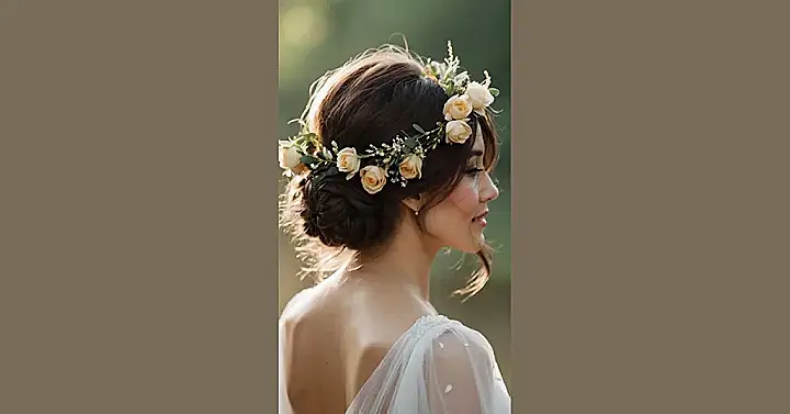 And the best part? This hairstyle is super versatile! You can adapt the flower crown to match any wedding theme – boho, rustic, classic, whatever floats your boat! Plus, it’s not just for long hair; you could rock this look with a shorter ‘do too. So, whether your wedding is a massive celebration or a small, intimate gathering, this flower crown hairstyle guarantees you’ll be looking stunning and feeling like a million bucks. Who needs a tiara when you’ve got this?