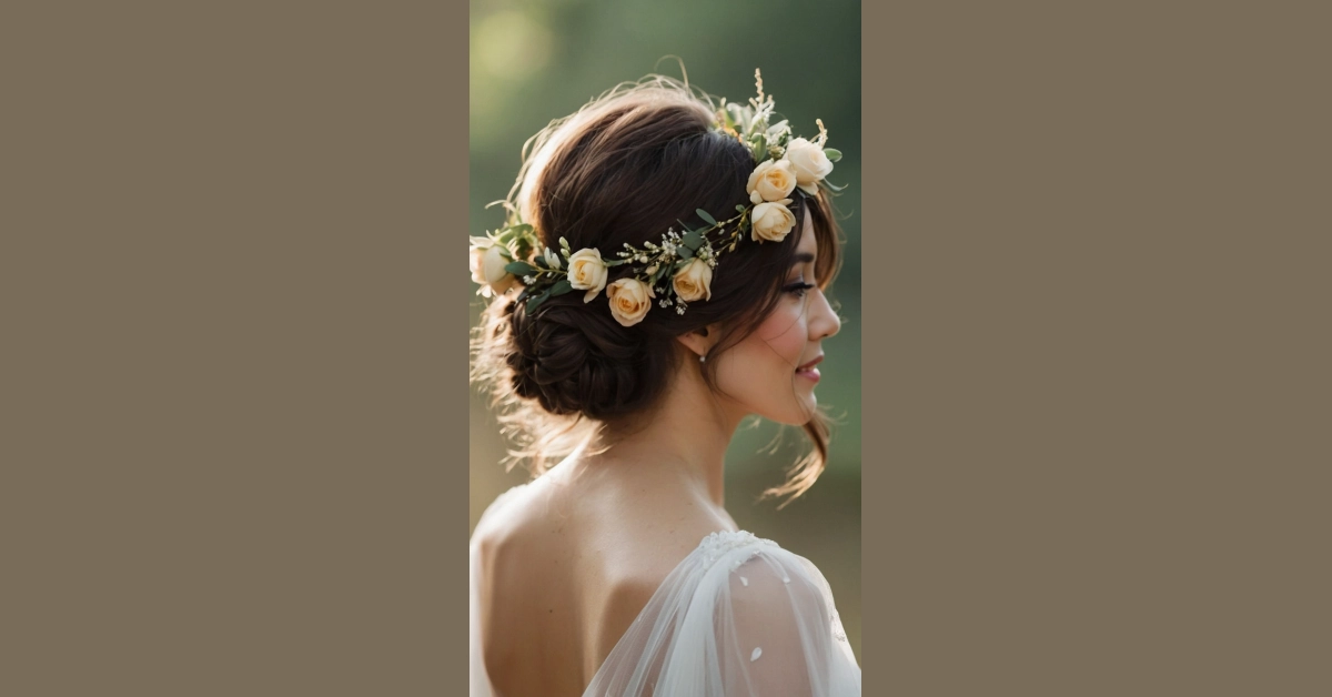 And the best part? This hairstyle is super versatile! You can adapt the flower crown to match any wedding theme – boho, rustic, classic, whatever floats your boat! Plus, it’s not just for long hair; you could rock this look with a shorter ‘do too. So, whether your wedding is a massive celebration or a small, intimate gathering, this flower crown hairstyle guarantees you’ll be looking stunning and feeling like a million bucks. Who needs a tiara when you’ve got this?