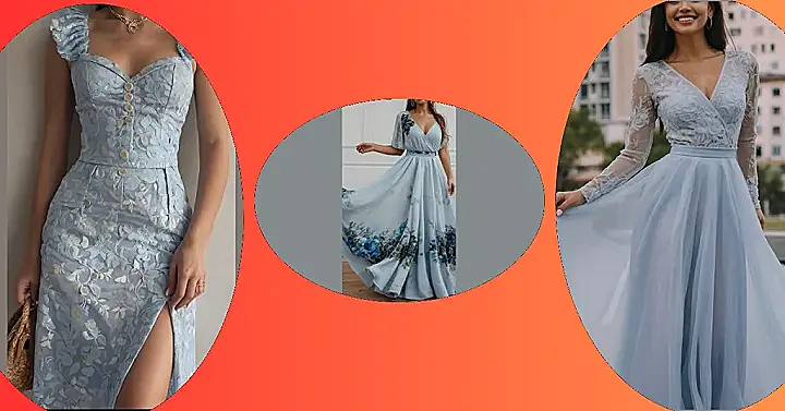 This dress is like a fairytale come to life! It’s got all the good stuff – a pretty blue color that’s like the sky on a sunny day, a flowy skirt that’s perfect for twirling, and delicate little flowers that are like tiny pieces of art. If you wear this, you’ll be the star of the show – everyone will want to dance with the girl who looks like a princess!