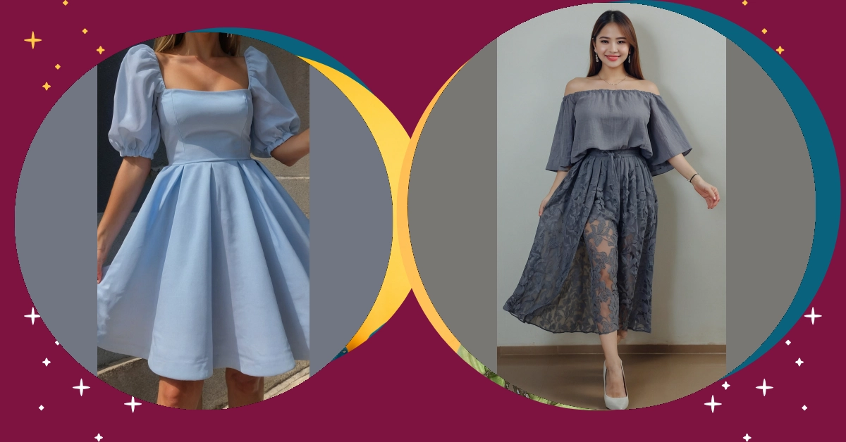 This outfit is like a breath of fresh air! It’s got all the vibes of a summer day – sunshine, flowers, and a little bit of sass. The blue floral frock is super cute, and the puffy sleeves make it look like you’re ready to take on the world. It’s like a comfy and stylish hug, perfect for strolling around town or grabbing some ice cream with your friends.