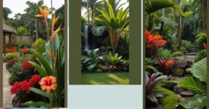 This backyard is like stepping into a tropical paradise right in your own home! Imagine relaxing on a hot summer day next to that sparkling pond and waterfall. The lush greenery and those gorgeous palm trees make you feel like youโre on a vacation. It’s like a little slice of paradise right in your backyard. You might even hear the sound of a beach party happening nearby, but donโt worry โ it’s just the wind whispering through the palm leaves.