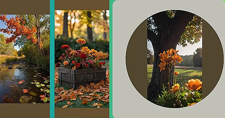 Imagine stumbling upon this cozy scene on a crisp autumn day! A rustic wooden box bursts with vibrant flowers, their colors mirroring the changing leaves around them. It’s like a little piece of sunshine tucked away in a forest of gold, reminding you that even as the days get shorter, beauty still blooms.