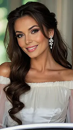 This hairstyle is like a dream come true for brides who want to look stunning without having to put their hair up. It’s all about those loose, romantic waves, and the sparkly hair clip is like a little piece of magic! Imagine yourself walking down the aisle with your hair flowing behind you, like you’re straight out of a fairytale. You’ll feel like a princess without the pressure of a super complicated hairstyle.