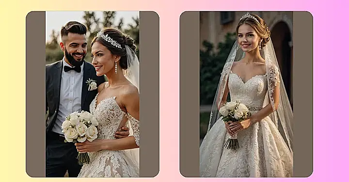 Then comes the crown, because why just get married when you can also feel like royalty for the day? Balancing a sparkly crown on top of a carefully sculpted hairdo, all while making room for a flowy veil, is a skill worthy of its own Olympic event. It’s the ultimate bridal accessory triple threat, turning you into the undisputed ruler of the aisle, ready to wave regally (or just try not to step on your dress).