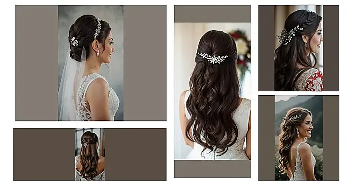 This bride looks like she’s ready to say “I do” in a magical winter wonderland! Her hair is styled with soft, romantic waves and a sparkly hairpiece that’s like a crown of snowflakes. It’s the perfect look for a winter wedding, and it’s guaranteed to turn heads.