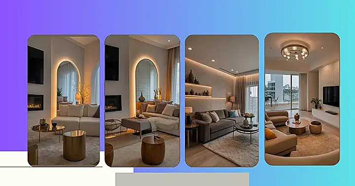 This living room’s lighting is like a secret superpower! That glowing archway isn’t just a fancy mirror; it’s basically a portal to the “Chill Zone,” perfectly lit for your next Netflix binge or a super important TikTok scroll. And let’s not forget the fireplace, flickering away like it’s saying, “Come on in, kick back, and maybe tell me a campfire story.” It’s so inviting, you almost expect it to hand you a mug of hot cocoa. This isn’t just light; it’s an entire mood, making everything feel cozy and a little bit magical, without even needing a magic wand.