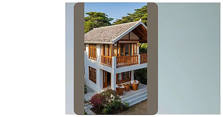 Forget those towering multi-story houses where you need a GPS just to find the kitchen! This bungalow is all about keeping things super chill and easy. With its crisp white walls and warm wooden doors and windows, it practically screams, “Come on in, kick off your shoes, and let’s have a snack without climbing a single stair!” It’s like the house itself is saying, “Why go up when you can just spread out and relax right here?” Plus, that cool terracotta roof looks ready for a tiny, friendly dragon to perch on it, just for fun.