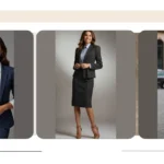 This picture shows a young woman rocking a seriously stylish office outfit! It’s the perfect blend of professional and cool – like she’s ready to conquer the boardroom, then head out for some fun after work. That navy blue suit is totally on point; it’s sophisticated but not stuffy, and the crisp white shirt underneath adds a touch of elegance. It’s the kind of outfit that says, “I mean business,” but also, “I’ve got great taste.” Imagine yourself walking into school in this outfit – you’d be the coolest, most confident person in the building.