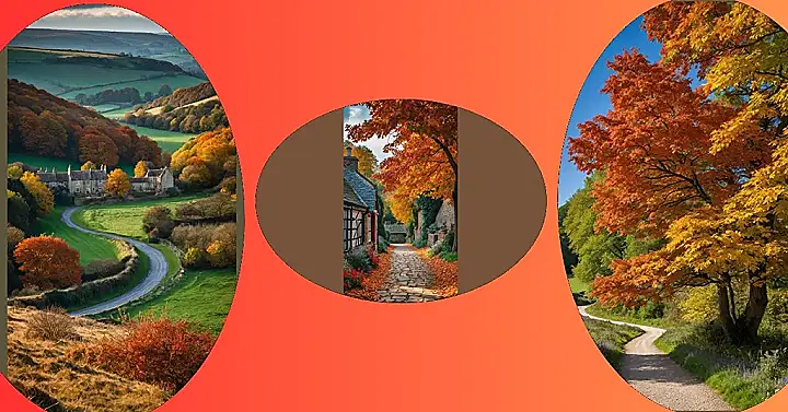 Check out this amazing scene from England! It’s like the rolling hills are wearing giant, comfy green blankets, and the trees decided to have a massive costume party with all the bright orange and yellow outfits they own. See that road winding through the middle? It looks less like a straight path and more like a piece of spaghetti that got a little lost on its way to dinner. And those houses nestled down there look super peaceful, probably sipping tea and watching the leaves change colour, thinking how lucky they are to live right in the middle of this postcard.