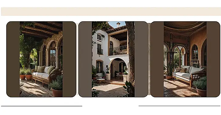 Step outside and be transported to the sun-drenched landscapes of Spain with the charming exteriors of these villas. Surrounded by vibrant bougainvillea cascading down white-stucco walls, wrought-iron accents add a touch of elegance to the rustic appeal. Imagine sipping a glass of sangria under a pergola draped in fragrant jasmine, the sounds of Spanish guitar in the background, with a view of a picturesque courtyard adorned with colorful ceramic tiles.