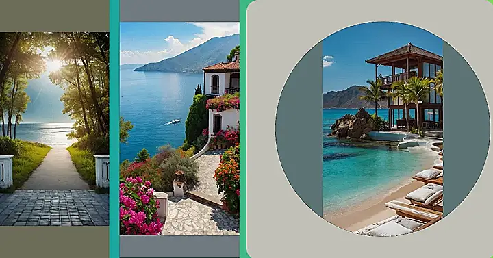 This isn’t just a pretty view; it’s like a whole vacation rolled into one picture. Look at that cute house all decked out with flowers – it’s practically begging for you to visit. The photographer really nailed it, capturing all the color and making you feel like you’re actually standing there, about to dive into that crystal-clear water.