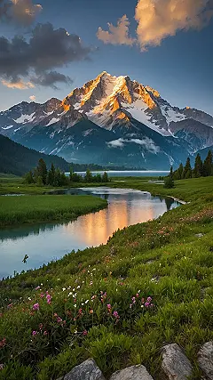 And don’t even get us started on the river acting like a super proud mirror, reflecting all that stunning mountain glory and the vibrant sky. It’s practically saying, “Look at me, I’m reflecting art!” Plus, those little wildflowers in the foreground are all dressed up in their best pinks and whites, adding a pop of color like they’re ready for their close-up too. It’s proof that sometimes, the best summer adventures involve chasing epic light and finding spots so pretty, your camera roll won’t know what hit it.