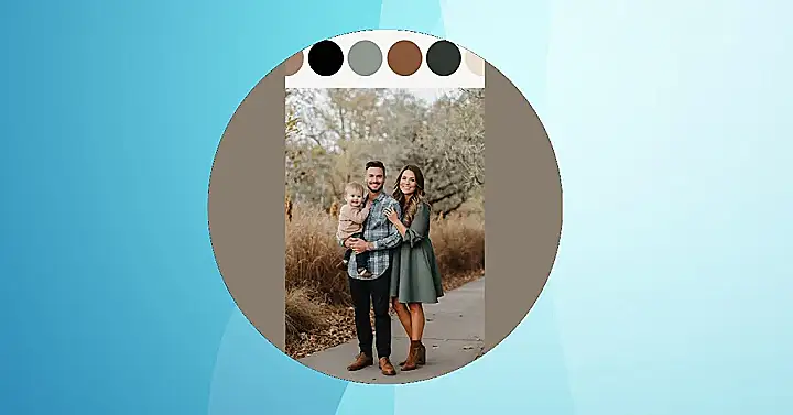 There are a few colors that are repeated, which is super important for making your photos look amazing. The soft browns and beige will give that warm fall feeling, and the little bit of blue keeps things fresh and fun. You could even get creative and add some fall foliage in your pictures! That way, you’ll have a beautiful background that complements your outfits perfectly. Make sure to smile, everyone!