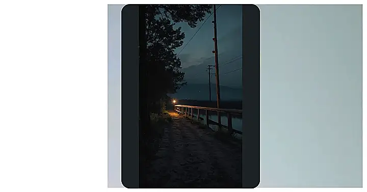 Imagine this: you’re sneaking out for a late-night adventure, but instead of mischief, you’re armed with a camera to capture the magic of nature at night. This photo is like a scene straight out of a fairytale – a mysterious path leading to a still lake under a twilight sky. That little lamp looks like a friendly fairy guiding your way, showing off the beauty of the trees and the peaceful water, proving that nighttime nature can be just as stunning as daytime nature. It’s a reminder that sometimes the best adventures happen when it’s dark and quiet!