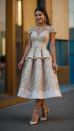 This dress is like the fancy older cousin you actually *want* to hang out with! It’s sophisticated but not stuffy, like sipping sparkling juice instead of water. The detailing up top is so intricate, it’s almost like wearing a piece of art. Show up in this, and you will definitely be the one everyone’s secretly hoping will spill the tea.