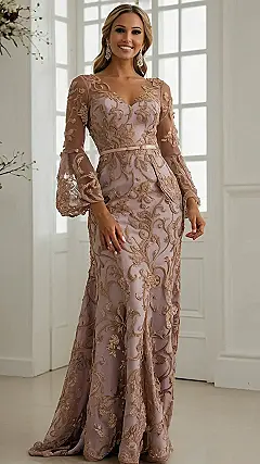 That dress is seriously stunning! Imagine yourself gliding into a wedding, looking effortlessly chic in this dusty rose masterpiece. The pretty lace details add a touch of elegance without being too over-the-top – you’ll be the picture of sophistication, but still leave the spotlight where it belongs: on the happy couple! Plus, those sleeves? Total boss move. They’re perfect for a slightly cooler day or just for feeling like a total queen.