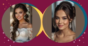 Throughout this blog, we’ll wander through 15 flower crown hairstyles that will inspire every bride’s floral fantasies. From breathtaking updos to effortless half-up styles and chic short-haired looks, there’s plenty of glam to go around. So sit back, relax, and let’s get your flower crown visions blooming with ideas for your upcoming nuptials!