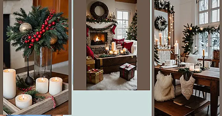 This picture is the perfect definition of cozy Christmas vibes! Imagine cuddling up on the couch with a warm blanket, a mug of hot cocoa, and the gentle glow of these candles. The little sprigs of holly and pine scattered around the tray add a touch of festive cheer, and the candy cane peeking out from the edge is a reminder that Christmas is just around the corner! It’s like the image itself is whispering, “Let’s snuggle up and enjoy the magic of the season!”