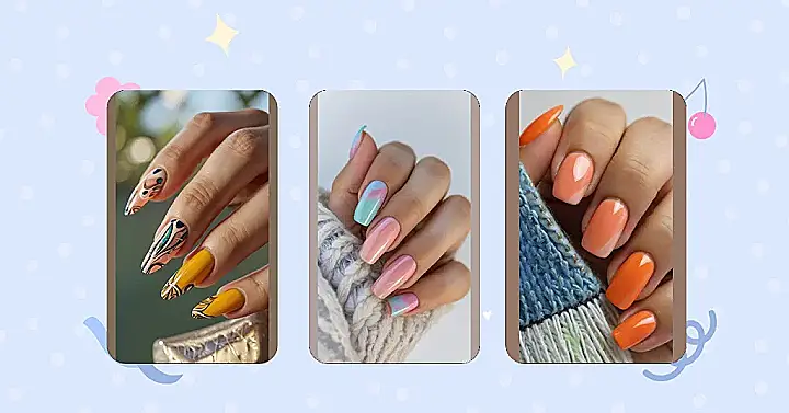 Other nails look like they were painted by a super talented butterfly! With peachy pastels and cool teal accents, they’re giving off major spring vibes, like when the flowers start to bloom and all the cute bugs come out. Let’s be honest, having nails this awesome is way more fun than studying for that history test… but maybe study a little bit too.