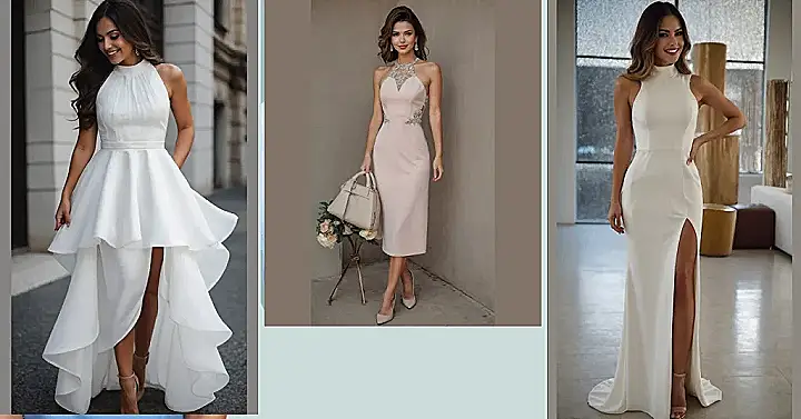 And can we talk about the details? The high-low hemline means you get to show off those fabulous shoes while twirling like you’re on a runway, and that pleated halter neck? Chef’s kiss! It’s super stylish and makes you look like you just stepped out of a magazine. The best part is, you’ll be comfy enough to mingle, laugh, and maybe even sneak an extra cupcake or two. This dress screams “I’m the bride-to-be, and I’m here to party… gracefully!” making it ideal for making unforgettable memories before the big “I do.”