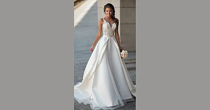 Planning a wedding in the summer heat? This dress looks so elegant and breezy, you could probably rock it while sipping lemonade and not even break a sweat! It’s like the dress version of a cool summer breeze – seriously stylish, but also super comfy-looking, so you can actually enjoy your big day instead of just surviving it!