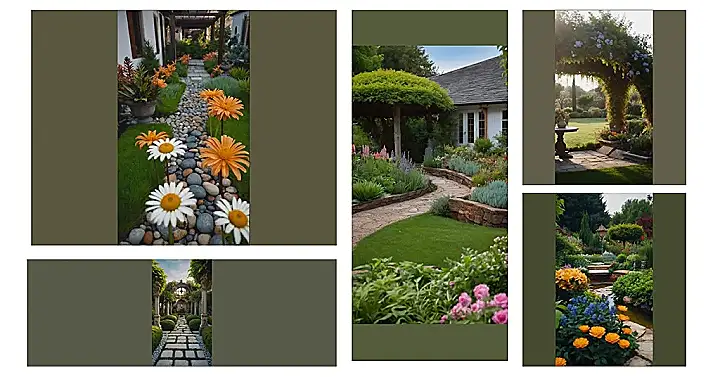 This picture is like a sneak peek into someone’s secret garden! It’s got all the things you’d want in an outdoor paradise: colorful flowers, lush green plants, and even a cute little stone path leading somewhere exciting. Imagine strolling along this path, with the warm sun on your face and the sweet scent of blooming flowers filling the air. It’s the kind of place where you could get lost in thought and let your imagination run wild!