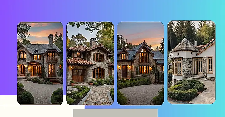 This amazing house looks like it just stepped out of a fancy French countryside postcard, complete with a sprinkle of magic hour light making it glow. It’s got that perfect ‘french cottage house exterior’ vibe going on, looking all sturdy and charming like it could tell a thousand stories, probably involving pastries and maybe a talking cat. Seriously, it looks so welcoming, you half expect a friendly ghost in a beret to wave from one of those glowing windows and offer you a croissant. It’s fancy, but in a cozy, make-yourself-at-home kind of way, perfect for pretending you’re off on a European adventure without leaving your screen.