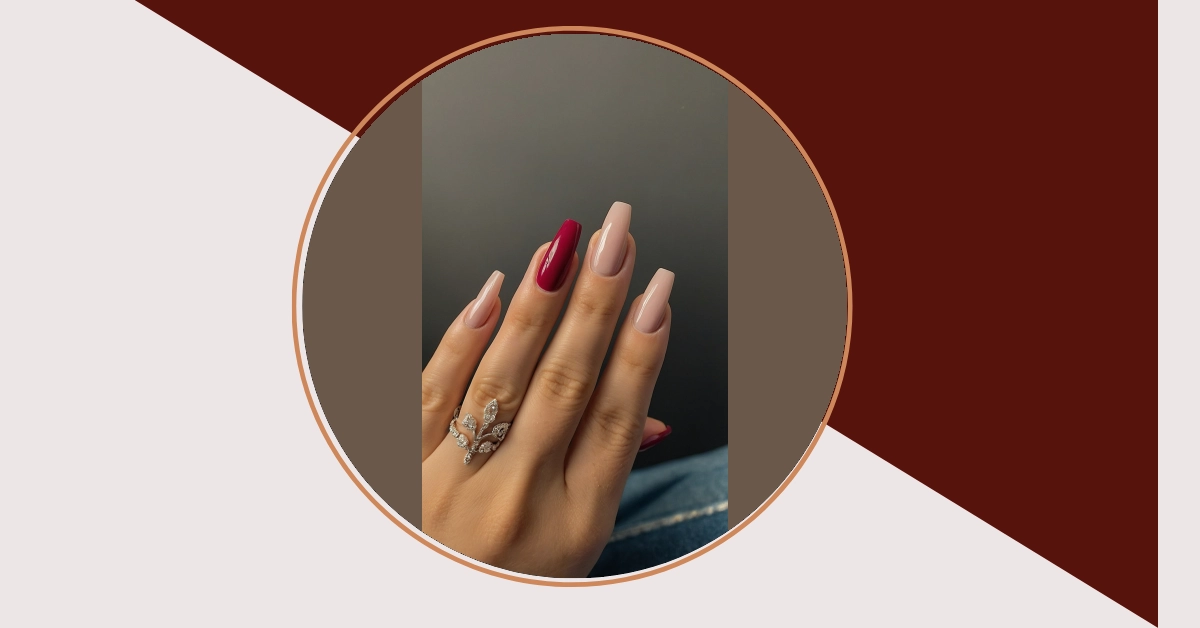Okay, so maybe you’re not *actually* a fan of pumpkin spice lattes, but who doesn’t love the cozy vibes of fall? This nail design is totally giving us those warm and fuzzy feelings! A mix of classic nude and a super chic, deep red is like a perfect fall outfit: effortlessly stylish and totally on-trend. We’re loving the pop of color on one finger that adds a little drama, just like adding a cute scarf to your fall outfit. Plus, it’s like the nail equivalent of a PSL, but instead of smelling like cinnamon, it smells like pure confidence!