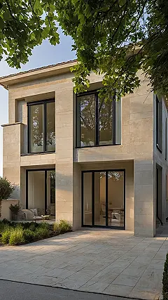 Imagine sipping lemonade under those trees, totally relaxed in your French villa! This house has that super cool, modern vibe that screams “I’m stylish without even trying.” It’s like the designers took a regular box and said, “Nah, let’s make it a super fancy box with massive windows to see all the cool stuff happening outside!”