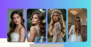 This elegant wavy style is totally perfect for a winter bride because it manages to be super fancy without looking like it took a million hours and an army of stylists. You get all the gorgeous volume and movement without worrying if a rogue gust of winter wind will mess up every single strand – it’s already perfectly messy-chic! Plus, with hair looking this good, adorned with what looks like frosted leaves and pearls, you’d almost expect a sleigh bell to jingle every time she turns her head. It’s the ultimate combination of cozy winter vibes and breathtaking bridal glam, ready for any snowy backdrop or warm reception hall.