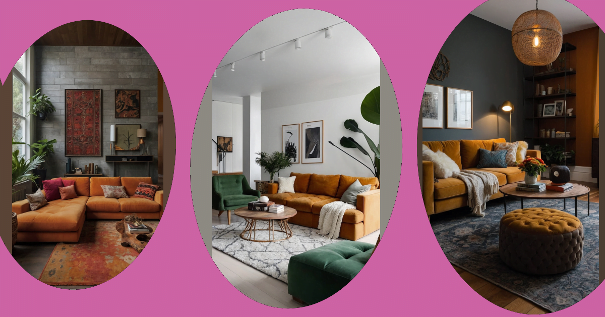 Now, picture yourself wandering through this urban oasis, where every corner is adorned with pops of citrusy yellows and earthy terracotta tones, invoking a sense of warmth and comfort. The space is alive with energy, thanks to accents of fiery reds and burnt oranges that reflect the dynamic pulse of city life. This urban living room is not just a place to rest your feet – it’s a vibrant haven that celebrates the beauty of urban living while offering a stylish escape from the concrete jungle.