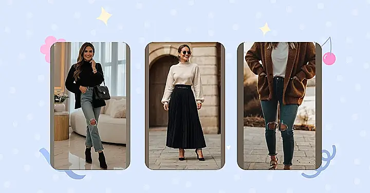 This outfit is perfect for a chill day out with friends or a casual coffee date. It’s comfy, stylish, and totally on-trend. The ripped jeans add some edge, while the black sweater and boots keep things cozy and chic. And let’s not forget that awesome purse! It’s like the cherry on top of this totally rad fall look.