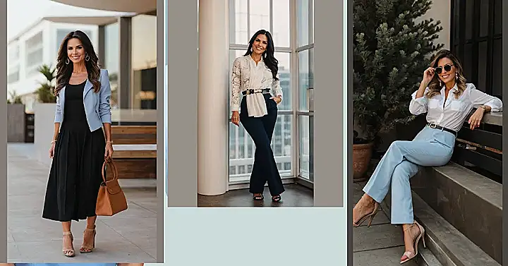 This woman is totally killing it with her cute mom outfit! She’s got the perfect balance of stylish and comfortable, proving that you don’t have to sacrifice looking good to be a mom. The white button-down shirt and sky-blue pants are classic choices, but the way she pairs them with those killer heels and cool shades elevates the whole look. She’s basically telling everyone, “I’m a mom, and I’m fabulous!”