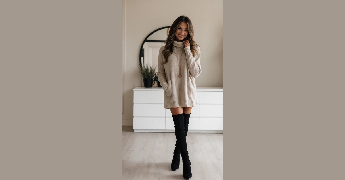 It’s officially fall, and that means it’s time to break out the cozy sweaters and thigh-high boots! This girl looks like she’s ready to rock the season in style. That chunky knit sweater is giving off major “cuddle up by the fireplace” vibes, but those boots are saying “I’m not afraid of a little chill.” She’s got the perfect balance of comfy and cool, and she’s totally nailing the casual fall outfit game.