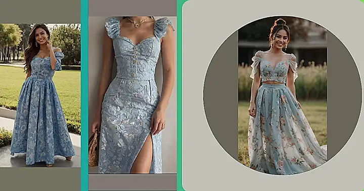 This blue floral frock is definitely giving us “fairytale princess” vibes! The flowy layers and delicate lace make it look like something right out of a storybook. You can almost picture this dress twirling around a ballroom, or maybe even a garden party – with a crown of flowers on top, of course! It’s a little bit whimsical, a little bit romantic, and definitely a lot of fun to wear.