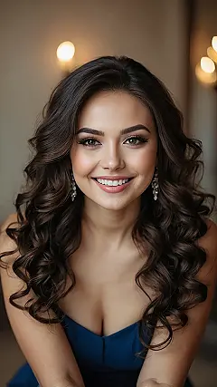 Notice how the hair is swept to one side, flowing down like a waterfall of bouncy goodness? That’s not just for looks (though, wow!). It’s also genius for keeping your locks looking awesome, whether you’re indoors sipping hot cocoa or braving a photo op in a winter wonderland. Plus, that sparkly hairpiece isn’t just a pretty decoration; it’s basically tiny little snowflakes (the non-melting kind!) adding that perfect touch of winter magic. With a style this stunning, your only worry will be trying not to outshine the actual snowflakes!
