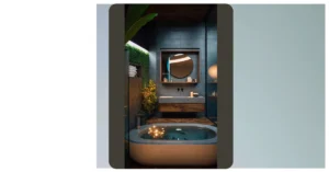 And let’s talk about those clever details! That cool, textured wall isn’t just a wall; it’s like a secret agent of style, making everything else pop with its smart design. It shows how even a wall can have a “personality” when you’re home decorating. Plus, that little side table isn’t just holding books; it’s like the room’s brain, quietly making everything look smarter and totally put together. See that bright orange chair? It’s not afraid to stand out! Mixing things like the warm wood ceiling, that sleek wall, and a fun pop of color helps create a space that feels totally unique and definitely not boring.
