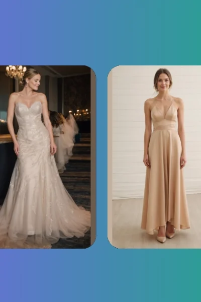 This dress, with its flowy satin fabric, looks so comfortable you could probably do a light jog in it (though we totally recommend gliding gracefully instead, for maximum effect!). Walking into a room wearing something like this will make you feel like you’re floating on a cloud of blush pink, with those cool, billowy sleeves adding a touch of drama that screams, “Yes, I *am* fabulous, and yes, my outfit deserves its own spotlight.” It’s the perfect blend of looking super fancy without actually having to sacrifice your ability to bust out a dance move or snap an epic selfie without restriction.